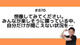 人生論 想像してみてください。みんなが楽しそうに喋っている中、自分だけが聞こえない状況を…